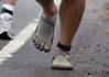 They do get a little squishy if you step in a puddle, but not as bad as you might think. I do love it when people come up to me after a race or long run and ask if I just ran in them. I keep thinking, “do you think I’d wear these funny looking things if I didn’t run in them?”