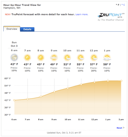 Today’s weather forecast for the Smuttynose Marathon in Hampton, NH: