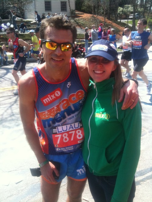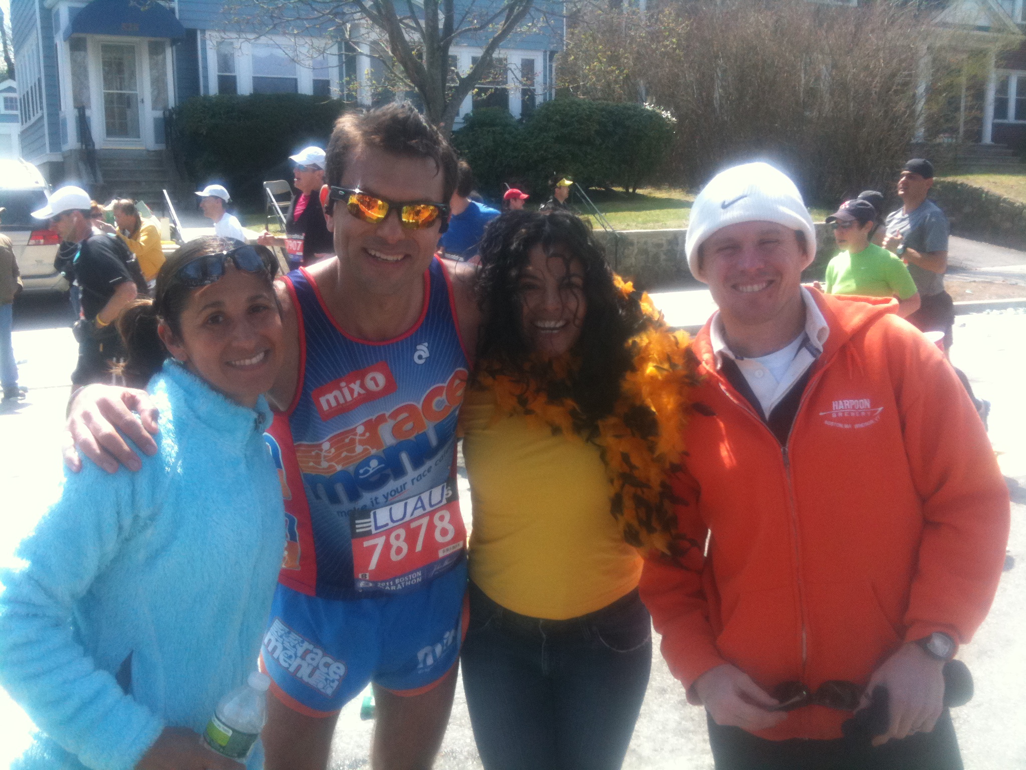 It was at that moment though when my whole attitude changed. After 2+ miles of grumbling and wallowing in self-pity, I realized that I had a choice. I could do the death march thing to the end of the race OR I could embrace what had been given me and take advantage of the fact that I still had many friends on the course waiting to see me and cheer me on. I could stumble by them in misery or take this opportunity to celebrate that I was running Boston this year and a god-damned qualifier!!!