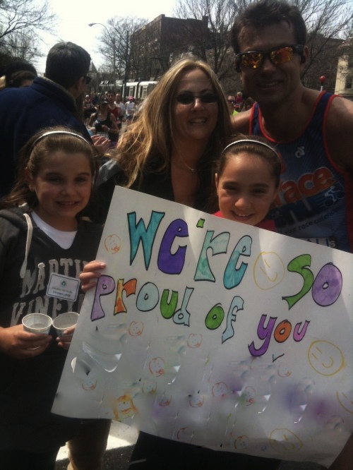 Then I thought of my older daughter, Katie. I had made a promise to her when I put her, Brooke and Jess on a plane the Friday before the marathon. They were going away to Florida ahead of me and I was going to join them Monday night after the marathon. I had promised Katie that I would wear my 2011 Boston Marathon Medal on the plane and would have it around my neck when I woke her up with a kiss when I got to our hotel. How could I break that promise? If I checked into medical, there would be no medal. In addition, I wouldn’t be able to wear the commemorative jacket I had bought days earlier.