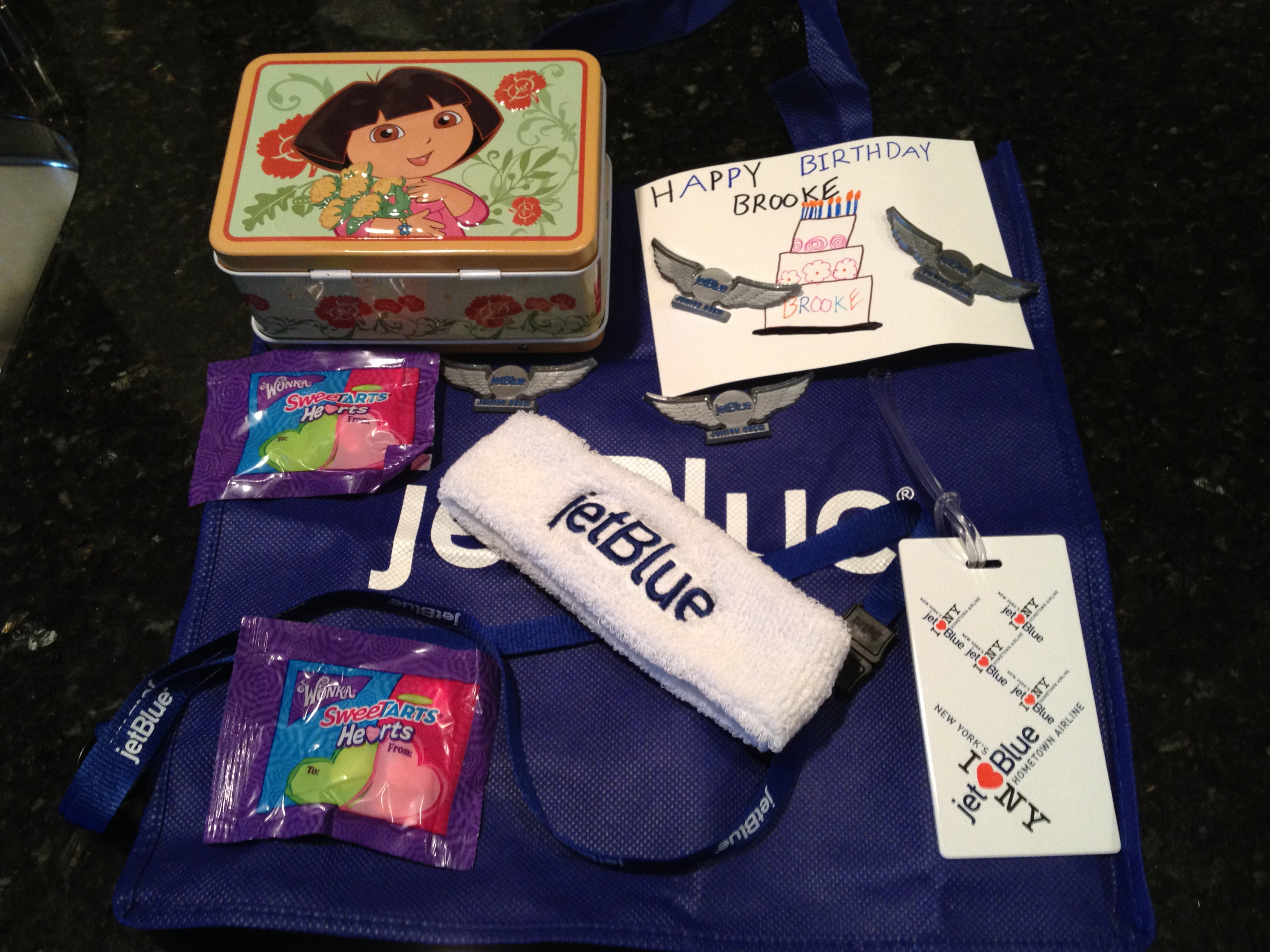The folks at JetBlue knew that Brooke’s birthday was this past Sunday; they also knew that one of Brooke’s favorite characters is Dora the Explorer – so they put this together: