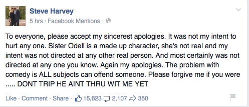 I went to Steve Harvey’s Facebook page to see if he had even acknowledged his insensitivity.